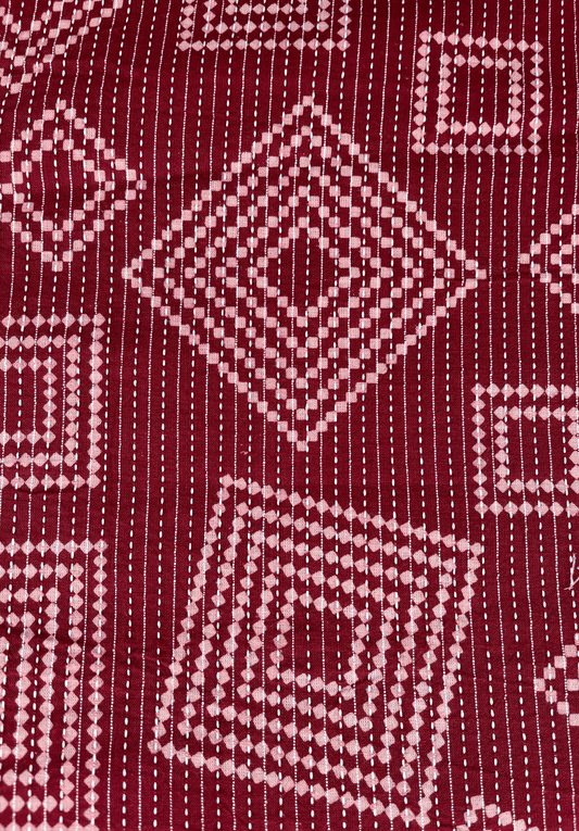 Crimson Elegance Kantha Stitch Cotton Fabric with Handcrafted Floral Embroidery