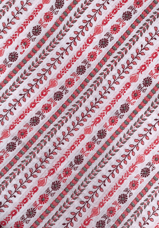 Regular price From Rs. 280.00Regular priceUnit price / perSale price From Rs. 280.00Charming Floral Stripe Kantha Print on White Pure Cotton Fabric