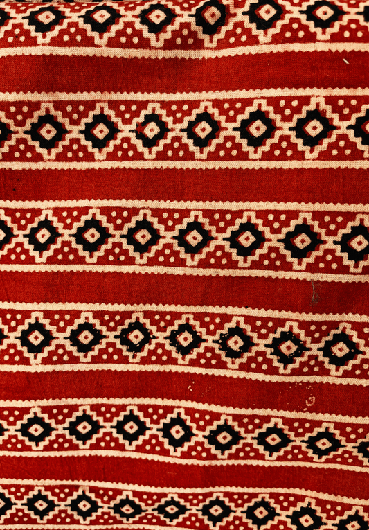 Regular price From Rs. 450.00Regular priceUnit price / perSale price From Rs. 450.00Diamond Motif Hand Block Fabric - Rust Red & Geometric Design