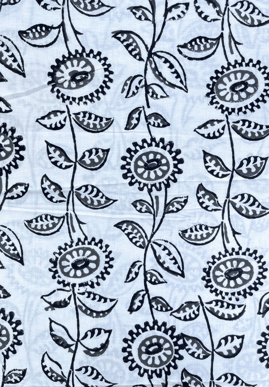 Regular price From Rs. 390.00Regular priceUnit price / perSale price From Rs. 390.00Classic White Cotton with Black Floral Block Print