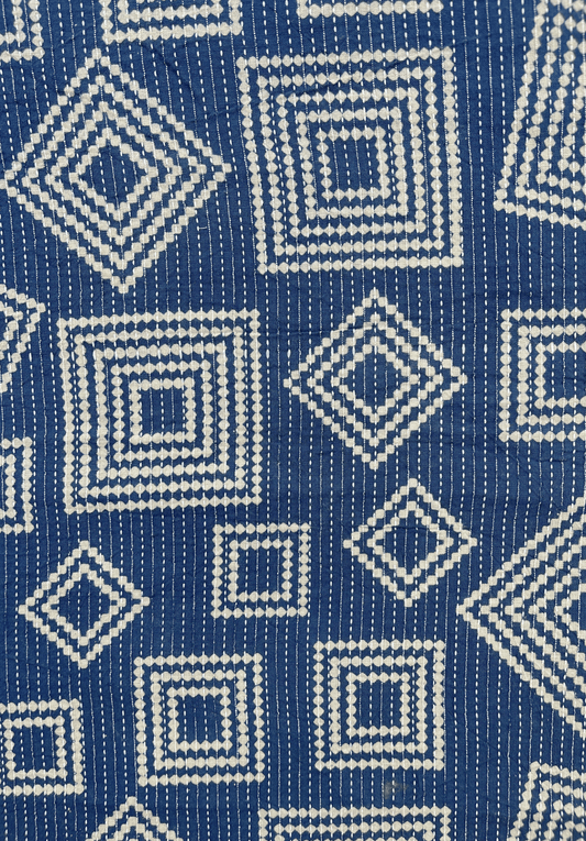 Handcrafted Kantha Stitch Cotton Fabric Traditional Geometric Embroidery Textile