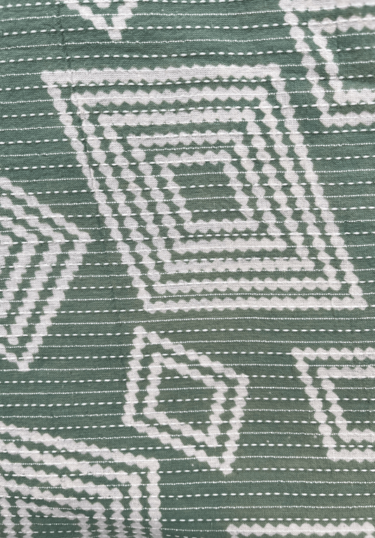 Green Kantha Stitch Fabric with Geometric Diamond Pattern