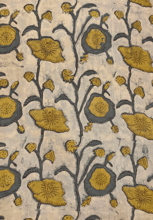 Hand Block Printed Vanaspati Cotton with Stylized Floral Motif