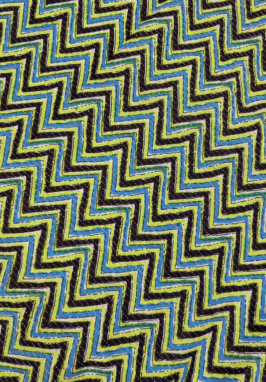 Multicolor chevron cotton fabric with kantha stitch detailing