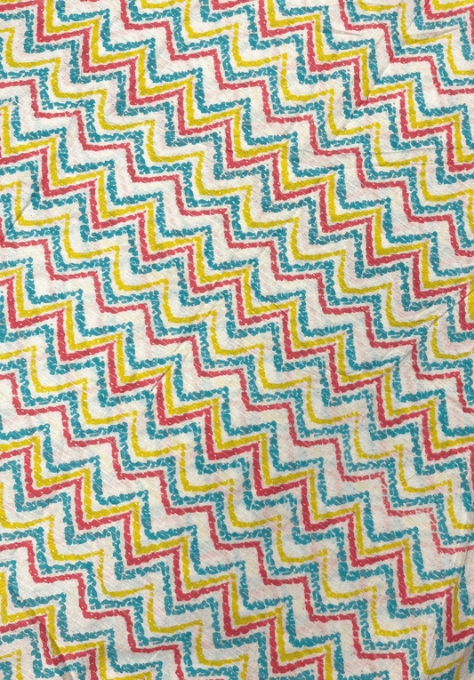 Multicolour Zigzag Print on Off-White Cotton Fabric