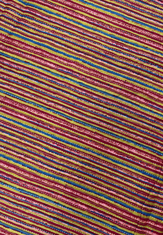 Multicolor Striped Kantha Cotton Fabric with Screen Print