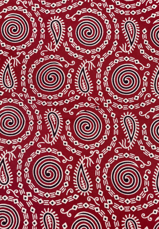 Paisley & Spiral Ajrakh Rayon - Red, Black, & White