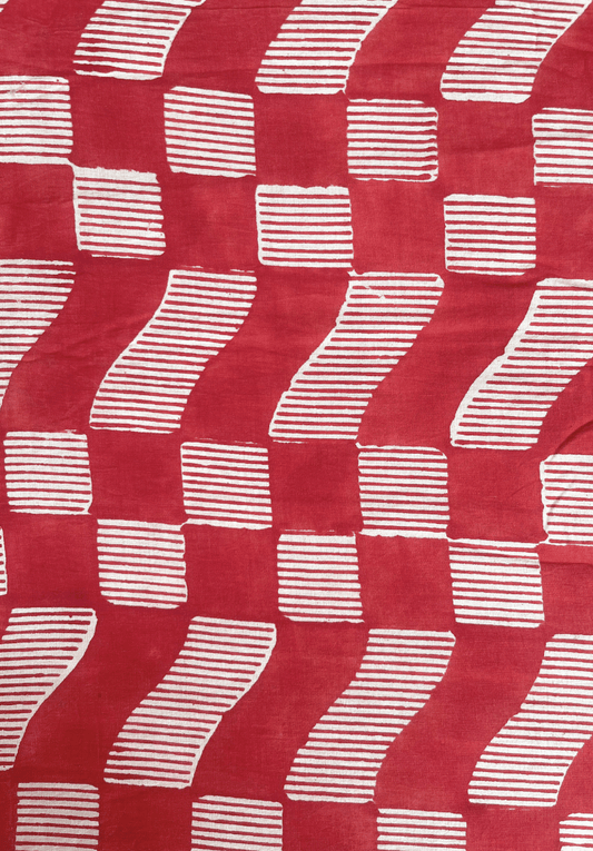 Traditional Hand Block Printed Cotton Fabric with Red & White Modern Design