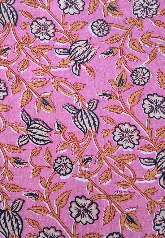 Regular price From Rs. 390.00Regular priceUnit price / perRs. 520.00Sale price From Rs. 390.00Vanaspati Print Cotton Fabric – Soft Pink with Floral Hand Block Design