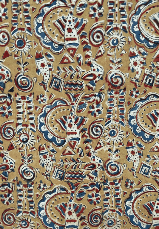Regular price From Rs. 350.00Regular priceUnit price / perSale price From Rs. 350.00Traditional Kalamkari Fabric - Fish, Floral, Geometric on Mustard