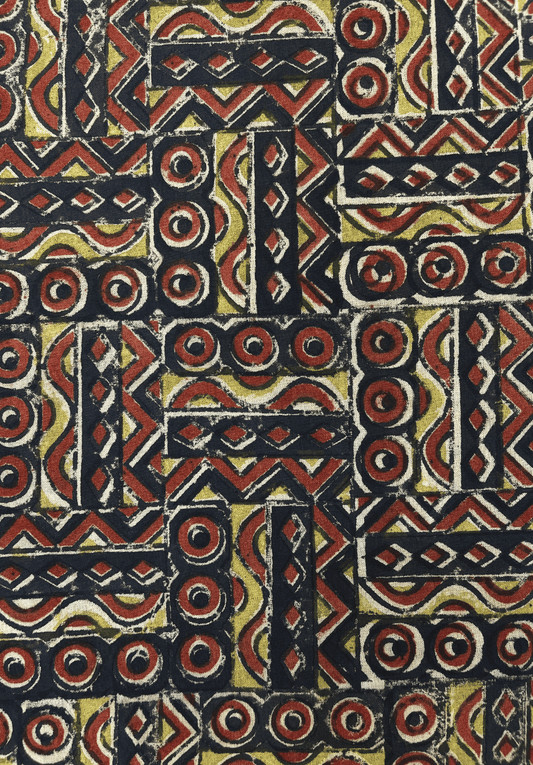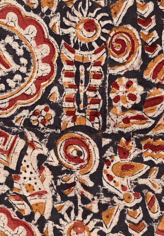 Regular price From Rs. 350.00Regular priceUnit price / perSale price From Rs. 350.00Traditional Printed Kalamkari Fabric with Tribal Mosaic Print on fade Black Background