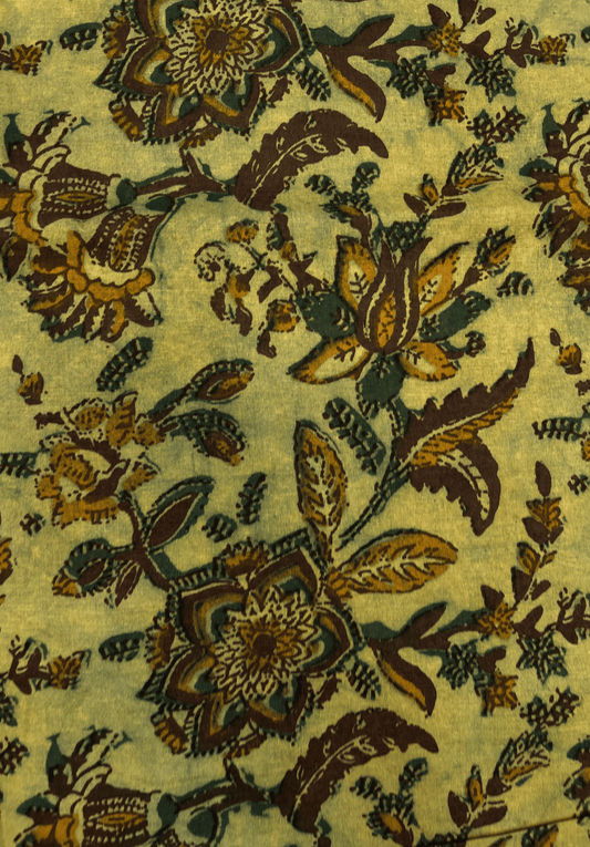 Regular price From Rs. 350.00Regular priceUnit price / perSale price From Rs. 350.00Traditional Kalamkari Fabric with Floral Motifs on Green Background