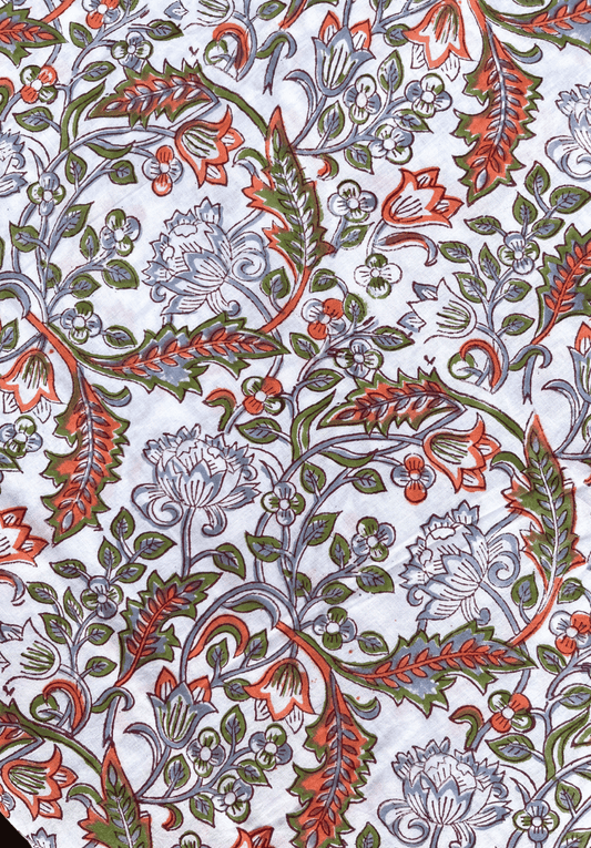 Regular price From Rs. 390.00Regular priceUnit price / perSale price From Rs. 390.00Intricate Floral Hand Block Print Vine Pattern in Green, Yellow & Red on White