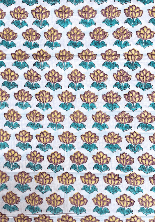 Handcrafted Cotton Fabric with Bright Floral Block Print