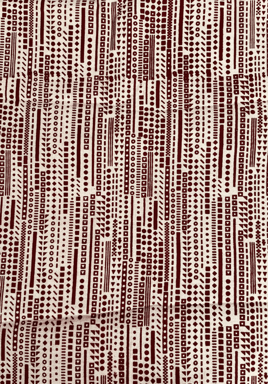Handcrafted Tribal Block Print Cotton Fabric – Maroon & Beige Ethnic Geometric Design
