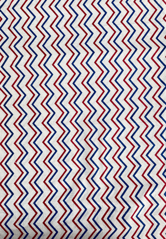 Regular price From Rs. 450.00Regular priceUnit price / perSale price From Rs. 450.00Hand-Block Printed Cotton Fabric | Red & Blue Zigzag Geometric Textile