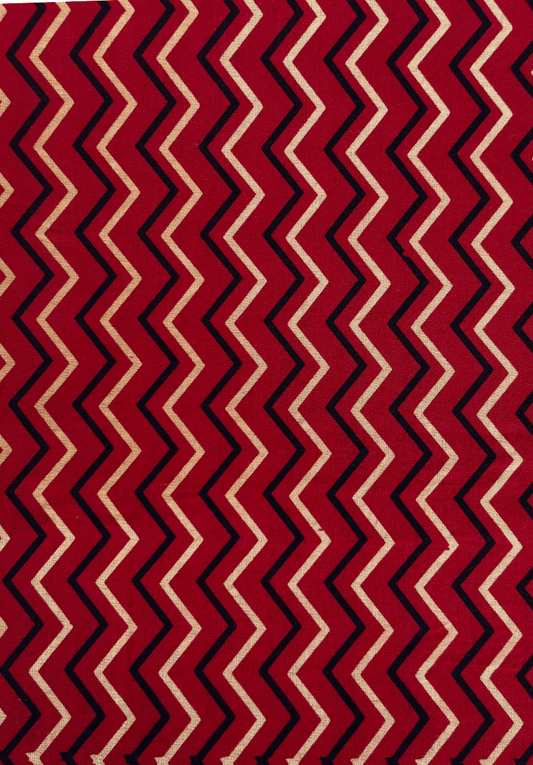 Hand-Block Printed Cotton Fabric | Maroon & Red Zigzag Design