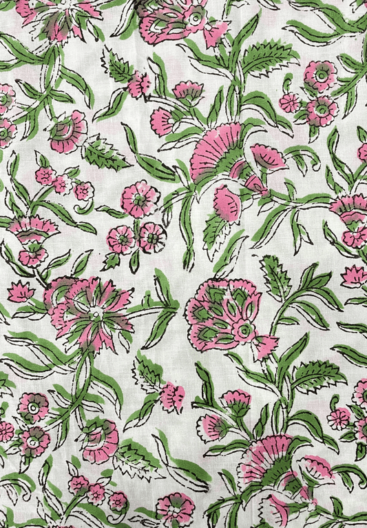 Handmade Block Print Cotton Fabric – Elegant Floral Motif