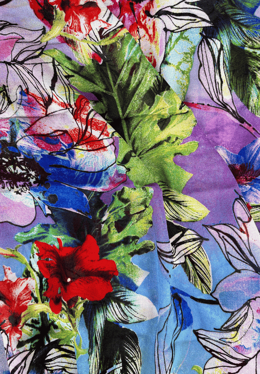 Hawaiian Escape Georgette Fabric with Leaf and Flower Print