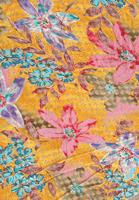 Regular price From Rs. 390.00Regular priceUnit price / perSale price From Rs. 390.00Digital Print Georgette with Colourful Garden-Inspired Design with Geometric Details