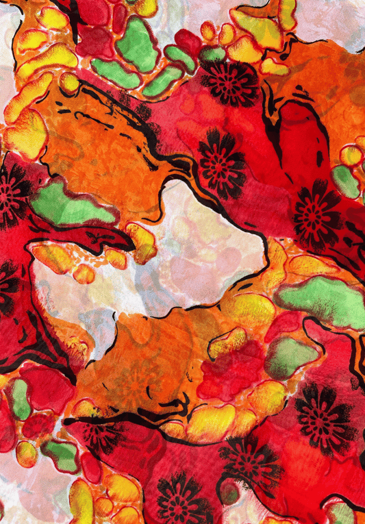 Carnival Bloom Georgette Splash of Citrus & Scarlet