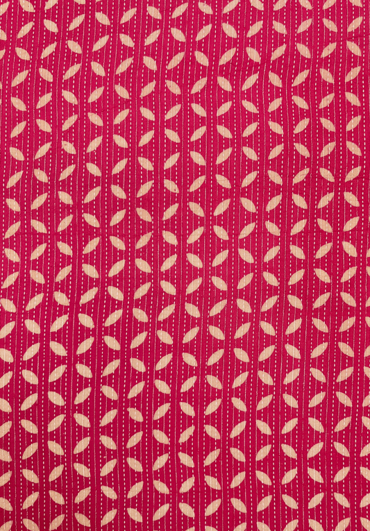 Pink Kantha Stitch Fabric with Leaf Pattern