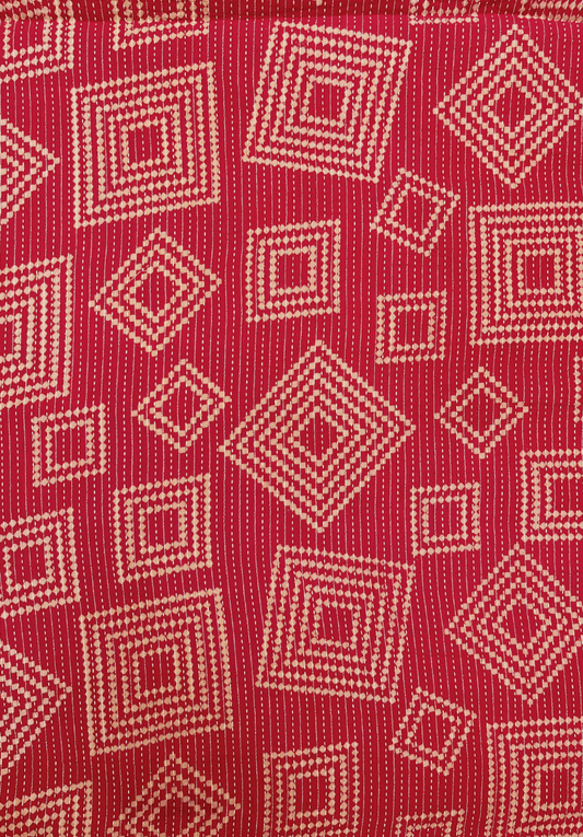 Maroon Kantha Stitch Fabric with Geometric Tribal Pattern