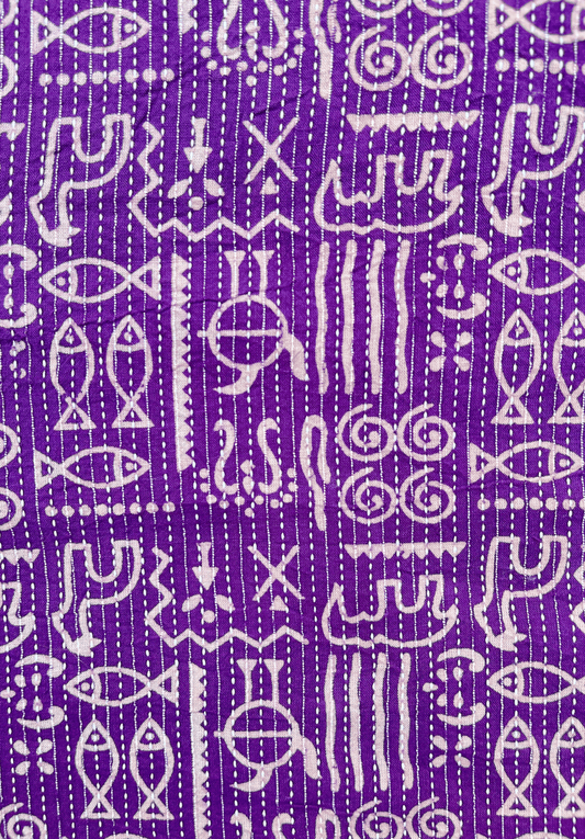 Regular price From Rs. 350.00Regular priceUnit price / perSale price From Rs. 350.00Purple Kantha Stitch Fabric with Tribal Motifs and Fish Patterns