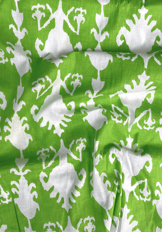 Elegant Screen Print Pure Cotton Fabric in Green and White
