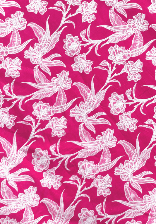 Regular price From Rs. 280.00Regular priceUnit price / perSale price From Rs. 280.00Vibrant Hot Pink Floral Cotton Fabric with Intricate White Botanical Screen Prints